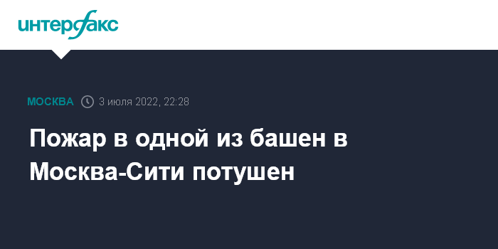 Москва. 3 июля. INTERFAX.RU - Возгорание в одной из жилых башен в Москва-Сити полностью ликвидировано, сообщил в воскресенье "Интерфаксу" информированный источник.