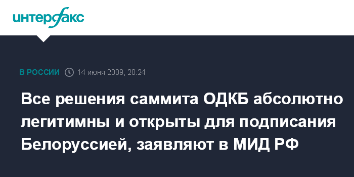 Все решения саммита ОДКБ абсолютно легитимны и открыты для подписания Белоруссией, заявляют в МИД РФ