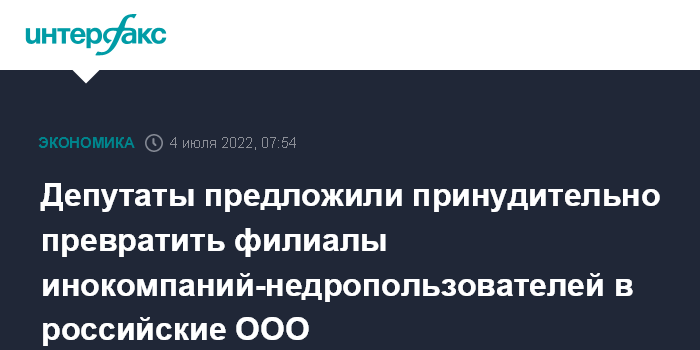 Депутаты предложили принудительно превратить филиалы инокомпаний-недропользователей в российские ООО
