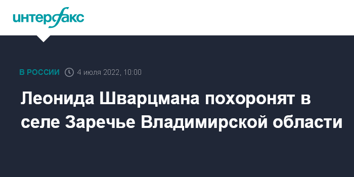 Леонида Шварцмана похоронят в селе Заречье Владимирской области