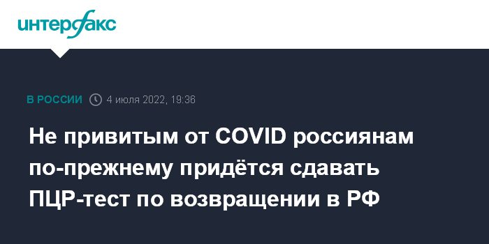 Не привитым от COVID россиянам по-прежнему придётся сдавать ПЦР-тест по возвращении в РФ