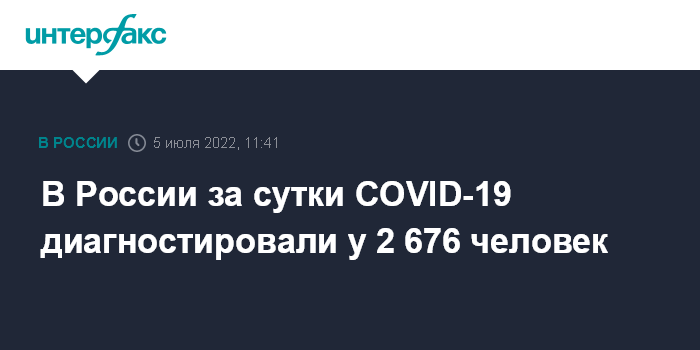 Москва. 5 июля. INTERFAX.RU - Суточный прирост новых заболевших коронавирусной инфекцией в РФ составил 2 676 случаев, следует из данных оперативного штаба, обнародованных во вторник.