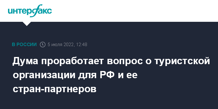 Москва. 5 июля. INTERFAX.RU - Комитет Госдумы по туризму инициировал создание Российской туристской организации после выхода из Всемирной туристской организации, которая может объединить и зарубежные страны-партнеры.