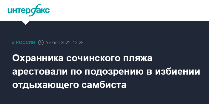 Охранника сочинского пляжа арестовали по подозрению в избиении отдыхающего самбиста