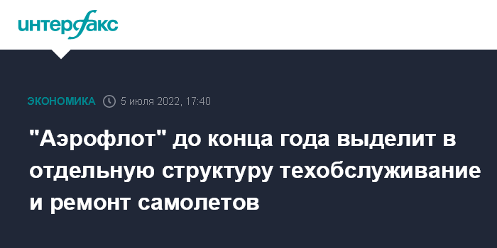 Москва. 5 июля. INTERFAX.RU - ПАО "Аэрофлот" передаст своей дочерней специализированной компании "А-Техникс" производственные мощности и кадровый ресурс Департамента технического обслуживания (ДТО), сообщила компания.