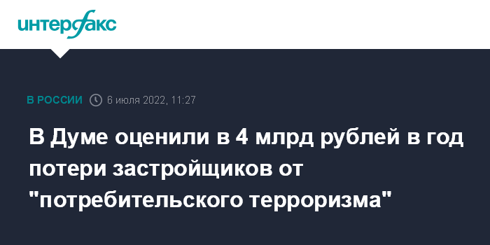 Как добавил замглавы Минстроя Никита Стасишин, все новостройки должны вводиться в срок и с надлежащим качеством. Речь идет о действиях юристов, сопоставимых с "потребительским терроризмом", который предполагает не защиту интересов граждан, а обогащение сторонних компаний, объянил он.