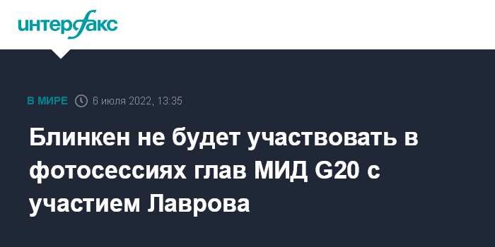 Блинкен не будет участвовать в фотосессиях глав МИД G20 с участием Лаврова