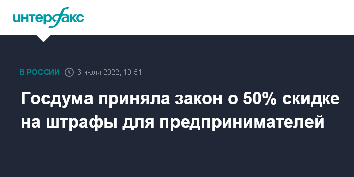 Госдума приняла закон о 50% скидке на штрафы для предпринимателей