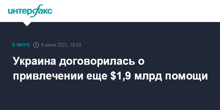 Москва. 6 июля. INTERFAX.RU - Правительство Украины на международной конференции в Лугано смогло договориться о привлечении дополнительно около $1,9 млрд помощи, сообщил премьер-министр Денис Шмыгаль.