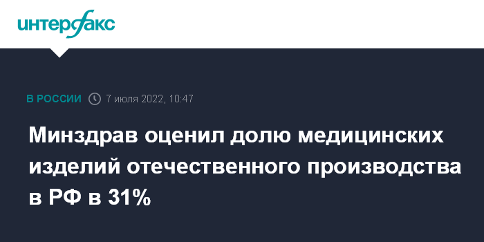 Минздрав оценил долю медицинских изделий отечественного производства в РФ в 31%