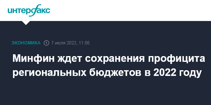 Минфин ждет сохранения профицита региональных бюджетов в 2022 году