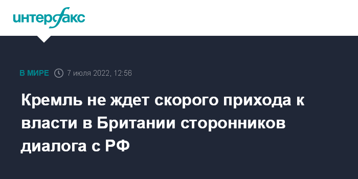 Москва. 7 июля. INTERFAX.RU - В Кремле рассчитывают, что рано или поздно в Великобритании придут к власти люди, настроенные на решение существующих проблем через диалог, но полагают, что это не дело ближайшего будущего.