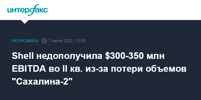 Shell недополучила $300-350 млн EBITDA во II кв. из-за потери объемов "Сахалина-2"