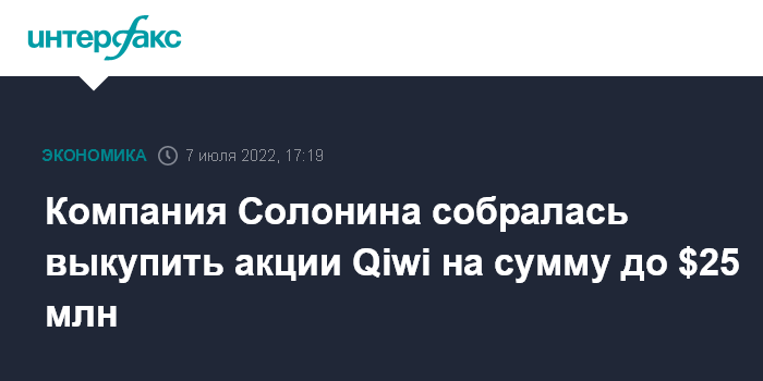 Компания Солонина собралась выкупить акции Qiwi на сумму до $25 млн