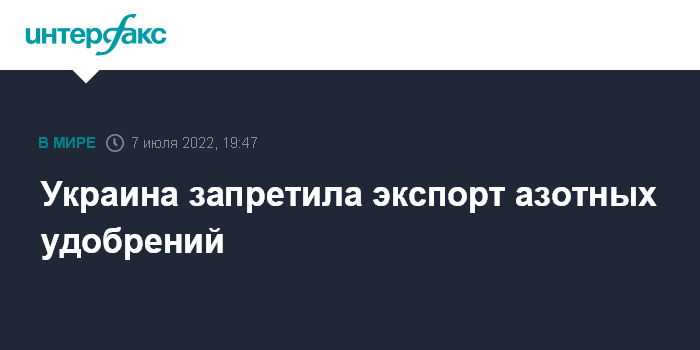 Как сообщалось, азотные удобрения в начале марта были запрещены к вывозу из Украины, однако в конце марта правительство разрешило их экспорт в пределах квоты на квартал 210 тыс. тонн, или 70 тыс. тонн в месяц.