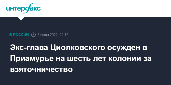 Экс-глава Циолковского осужден в Приамурье на шесть лет колонии за взяточничество