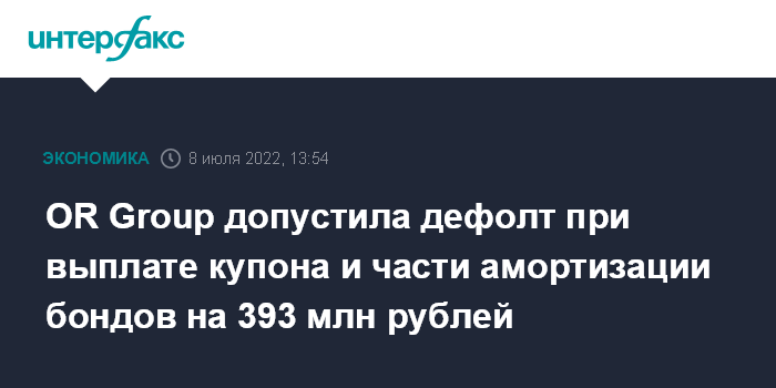 OR Group допустила дефолт при выплате купона и части амортизации бондов на 393 млн рублей
