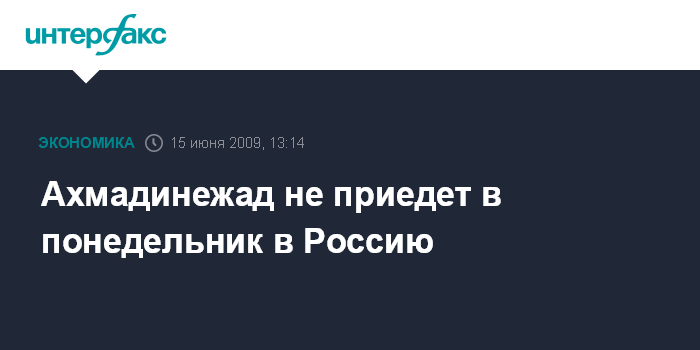 Москва. 15 июня. INTERFAX.RU - Президент Ирана Махмуд Ахмадинежад отложил запланированный на понедельник визит в Россию.