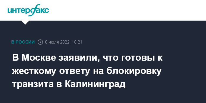 В Москве заявили, что готовы к жесткому ответу на блокировку транзита в Калининград