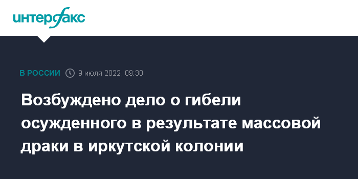 Возбуждено дело о гибели осужденного в результате массовой драки в иркутской колонии