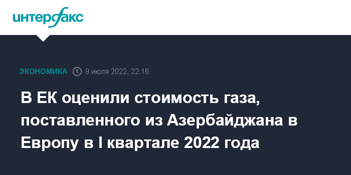 В ЕК оценили стоимость газа, поставленного из Азербайджана в Европу в I квартале 2022 года