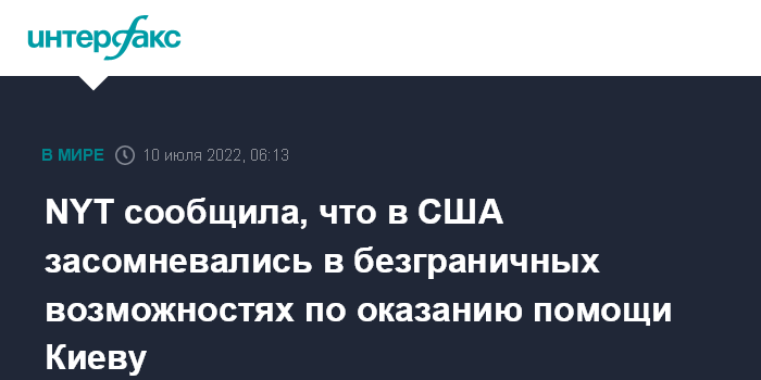 NYT сообщила, что в США засомневались в безграничных возможностях по оказанию помощи Киеву