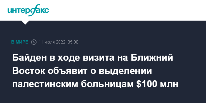 Байден в ходе визита на Ближний Восток объявит о выделении палестинским больницам $100 млн