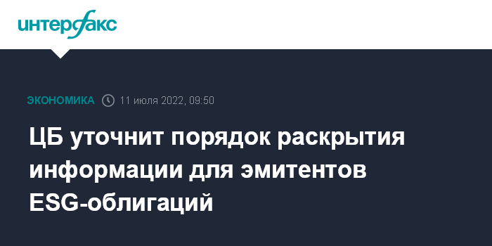 ЦБ уточнит порядок раскрытия информации для эмитентов ESG-облигаций