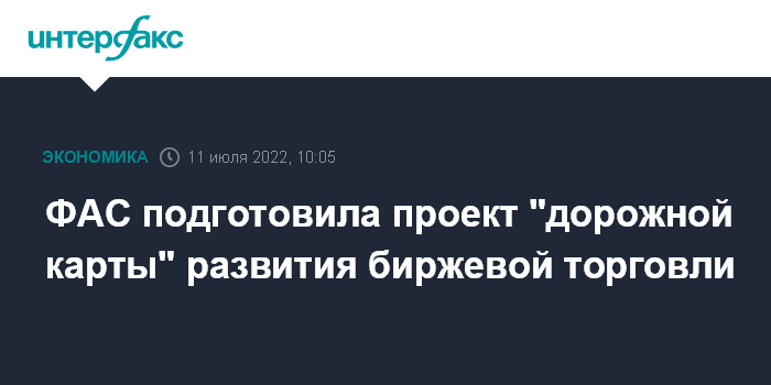 Москва. 11 июля. INTERFAX.RU - Федеральная антимонопольная служба (ФАС) РФ разработала проект "дорожной карты" развития биржевой торговли, сообщила пресс-служба ведомства.