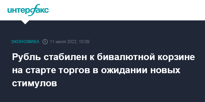 Рубль стабилен к бивалютной корзине на старте торгов в ожидании новых стимулов