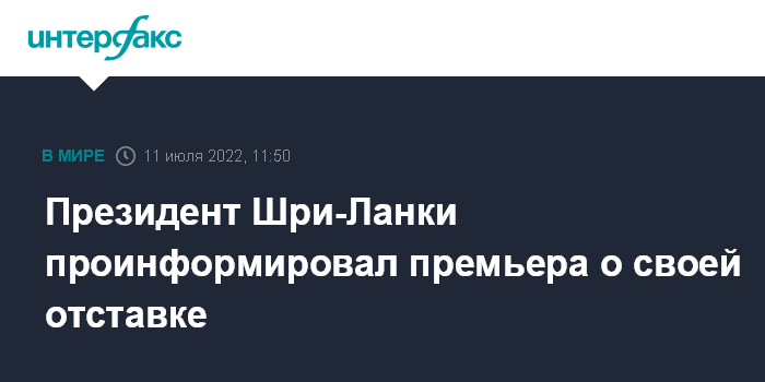 "Как планировалось ранее, президент Шри-Ланки Готабая Раджапакса проинформировал премьер-министра Ранила Викрамасингхе об отставке", - передает The Times of India.