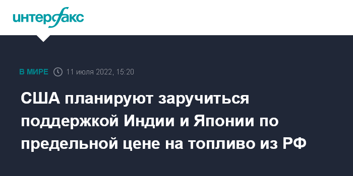 США планируют заручиться поддержкой Индии и Японии по предельной цене на топливо из РФ