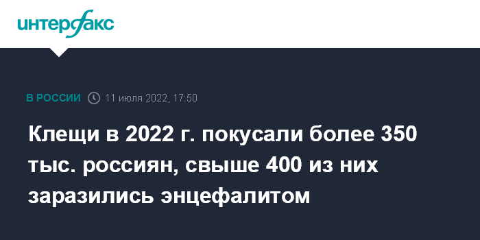 Клещи в 2022 г. покусали более 350 тыс. россиян, свыше 400 из них заразились энцефалитом