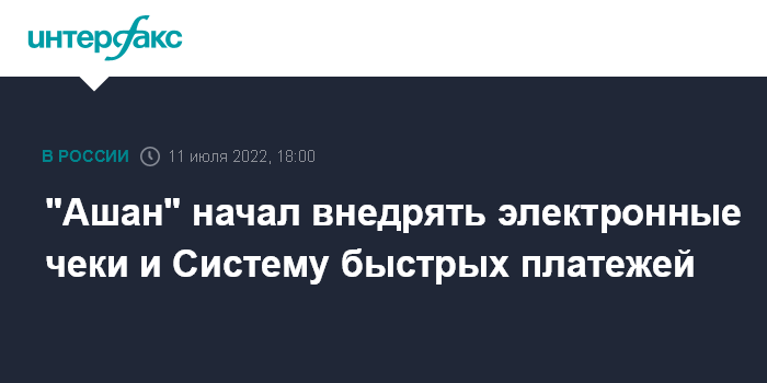 Кроме того, с 7 июля в двух гипермаркетах "Ашан" в Москве и в 13 супермаркетах в Москве и области был запущен пилотный проект по оплате через Систему быстрых платежей (СБП). Остальные магазины сети планируется подключить к оплате через СБП осенью 2022 года.