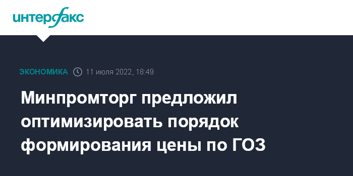 Москва. 11 июля. INTERFAX.RU - Минпромторг предлагает оптимизировать порядок формирования цены продукции, поставляемой по гособоронзаказу, следует из проекта приказа ведомства, опубликованного на портале проектов нормативных правовых актов.
