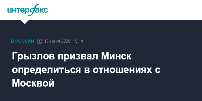 Москва. 15 июня. INTERFAX.RU - Председатель Госдумы Борис Грызлов выразил озабоченность в связи с отказом руководства Белоруссии принять участие в заседании Совета коллективной безопасности ОДКБ и предложил Минску определиться относительно будущих отношений с Россией.
