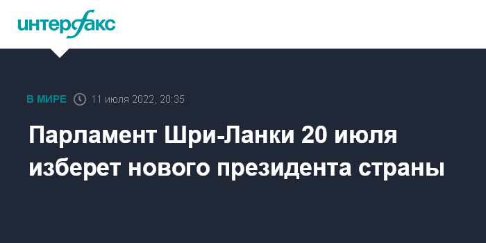 Парламент Шри-Ланки 20 июля изберет нового президента страны