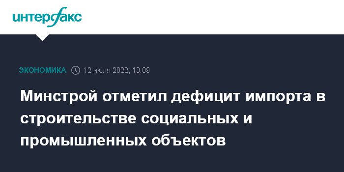 Минстрой отметил дефицит импорта в строительстве социальных и промышленных объектов