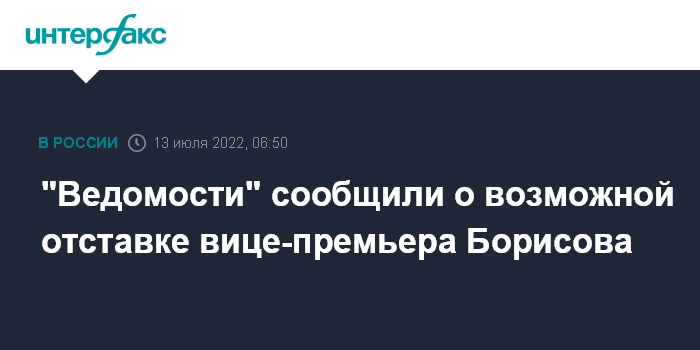 "Ведомости" сообщили о возможной отставке вице-премьера Борисова
