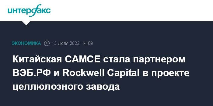 Китайская CAMCE стала партнером ВЭБ.РФ и Rockwell Capital в проекте целлюлозного завода