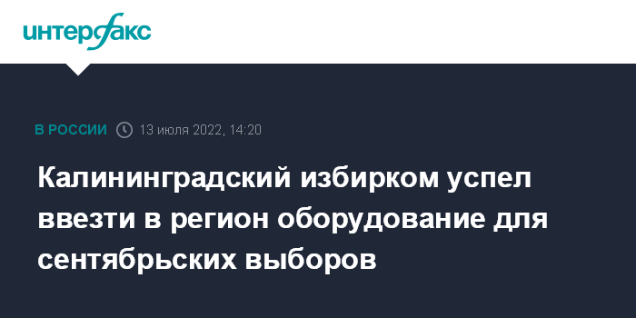 Калининградский избирком успел ввезти в регион оборудование для сентябрьских выборов