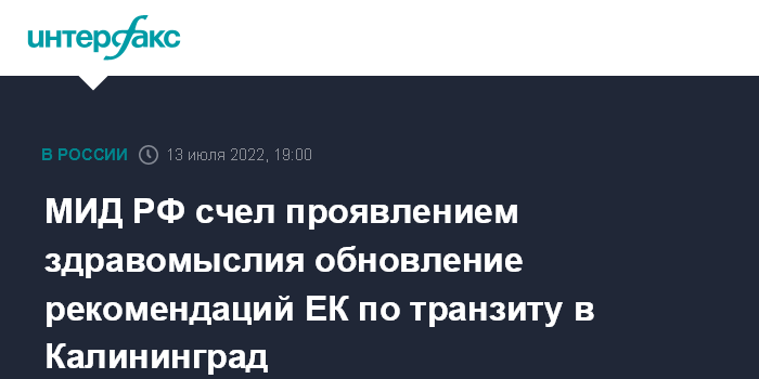 МИД РФ счел проявлением здравомыслия обновление рекомендаций ЕК по транзиту в Калининград