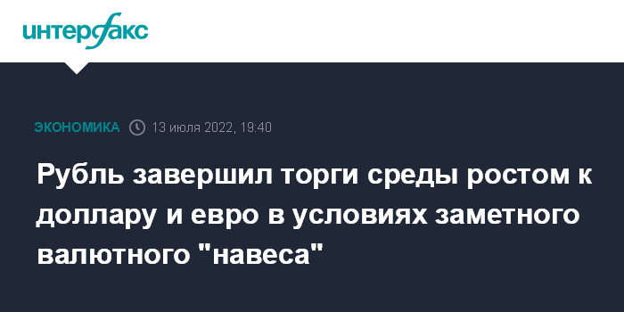 Как отмечают эксперты "Интерфакс-ЦЭА", рубль вырос к доллару и евро по итогам торгов среды в условиях преобладающего предложения валюты над спросом на нее. В обзоре рисков финансовых рынков, опубликованном накануне на сайте ЦБ РФ, отмечалось, что после периода повышенной волатильности ситуация на валютном рынке в апреле-июне 2022 года характеризовалась устойчивым чистым притоком валюты на внутренний рынок, что способствовало формированию избыточной валютной ликвидности в банковском секторе.