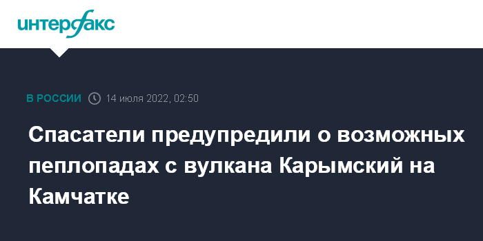 Москва. 14 июля. INTERFAX.RU - Пепел с вулкана Карымского может выпасть в трех районах Камчатки, а также в Петропавловске-Камчатском, сообщает пресс-служба главного управления МЧС региона в четверг.