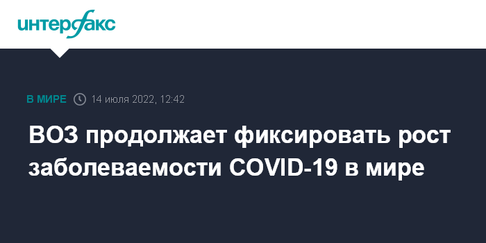 Москва. 14 июля. INTERFAX.RU - Уровень заболеваемости коронавирусом в мире за прошедшую неделю вырос на 6%, говорится в еженедельном эпидемиологическом бюллетене Всемирной организации здравоохранения (ВОЗ).