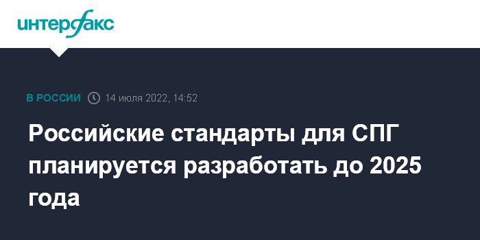 Москва. 14 июля. INTERFAX.RU - Первые стандарты для сжиженного природного газа (СПГ) появятся в России в этом году, в целом всю программу планируется завершить до 2025 года, сообщил в интервью "Интерфаксу" руководитель Росстандарта Антон Шалаев.