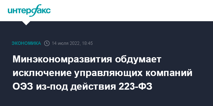 Минэкономразвития обдумает исключение управляющих компаний ОЭЗ из-под действия 223-ФЗ