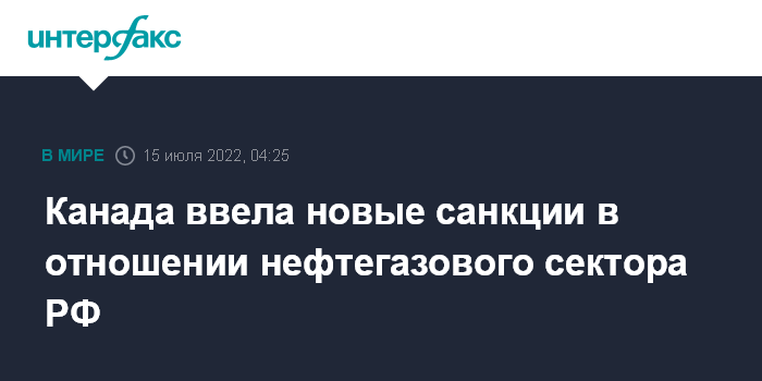 "14 июля 2022 года Канада внесла дополнительные поправки в правила о специальных экономических мерах (Россия), чтобы запретить предоставление двух производственных услуг российской нефтегазовой, химической и обрабатывающей промышленности", - говорится в документе, опубликованном на сайте министерства.