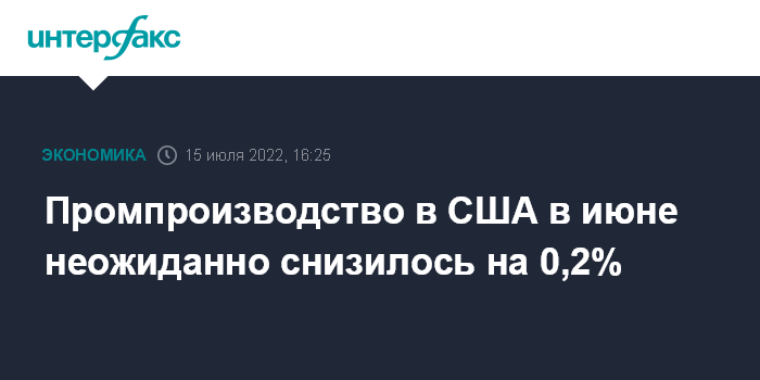 Москва. 15 июля. INTERFAX.RU - Объем промышленного производства в США в июне снизился на 0,2% к маю, показали данные Федеральной резервной системы.