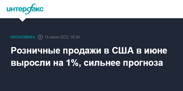 Розничные продажи в США без учета автомобилей в прошлом месяце увеличились на 1% после роста на 0,6% в мае. Показатель без учета автомобилей и топлива вырос на 0,7% (месяцем ранее он снизился на 0,1%), по данным Минторга.